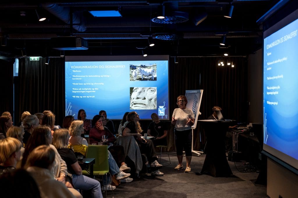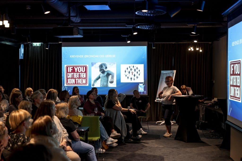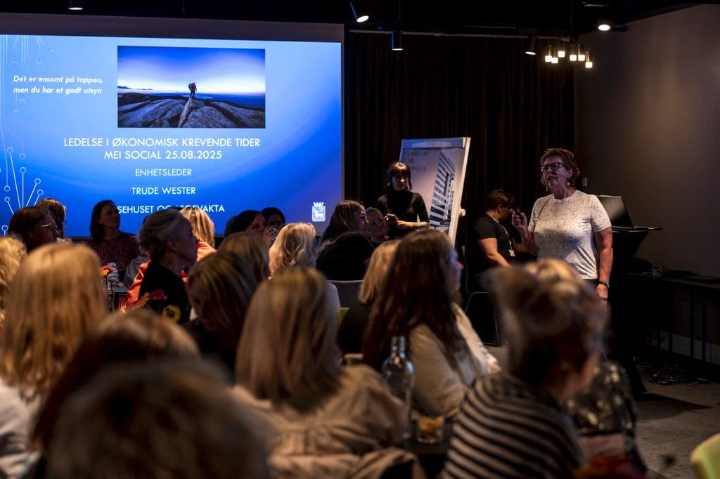 Kvelden åpnet med Trude Wester, enhetsleder ved Helsehuset, som delte erfaringer fra arbeidshverdagen i krevende økonomiske tider. Hun beskrev hvordan verdier og menneskesyn kan være et kompass når rammene strammes inn, og hvordan ledelse også handler om å bevare trygghet og retning.