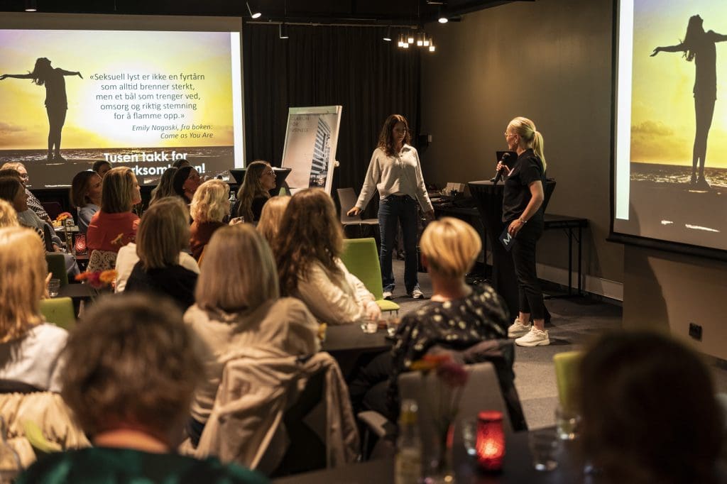 Sexolog Hilde Tollefsen snakket om seksuell helse som en del av livskvalitet og selvforståelse, mens Stine Lettrem, advokat og partner i Simonsen Vogt Wiig, reflekterte rundt hvordan tydelige grenser og struktur kan gi reell balanse mellom jobb og familieliv.
